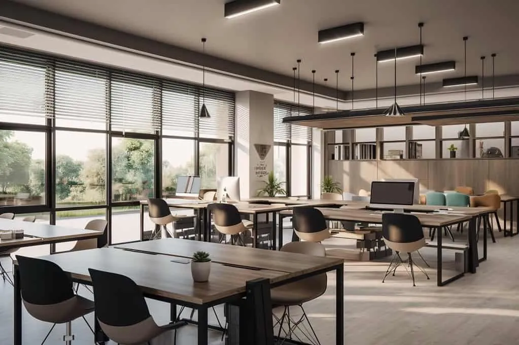 - Ánh sáng và không khí: Thiết kế văn phòng cần đảm bảo đủ ánh sáng tự nhiên và không khí trong lành, giúp nhân viên cảm thấy tỉnh táo và tràn đầy năng lượng.